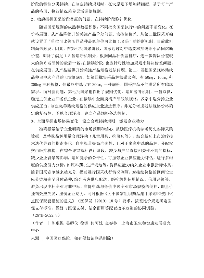國家藥品集中帶量采購常態化下接續探索與啟示