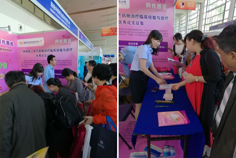 和雙?醋酸阿托西班注射液也亮相了此次會議,和雙?是一款專一針對子宮的縮宮素受體拮抗劑,對子宮具有高度的選擇性,是目前國內外公認的安全性和有效性最高的一種宮縮抑制劑。自和雙?2015年上市以來,海南中和藥業股份有限公司經過兩年多時間的學術推廣工作,讓越來越多的婦產科醫師了解了這個品種,開始使用和雙?,也有了不同的感悟。這次會議和雙?同樣受到婦產科醫師的廣大關注,吸引了500多位醫師來展臺咨詢,多位臨床主任對和雙?表達了強烈的使用意愿,也有很多醫師來展臺咨詢用藥方案的相關問題。