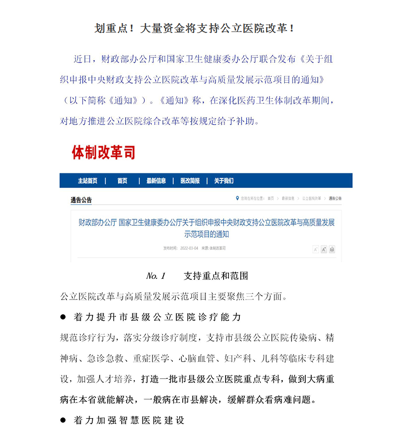劃重點!大量資金將支持公立醫院改革!