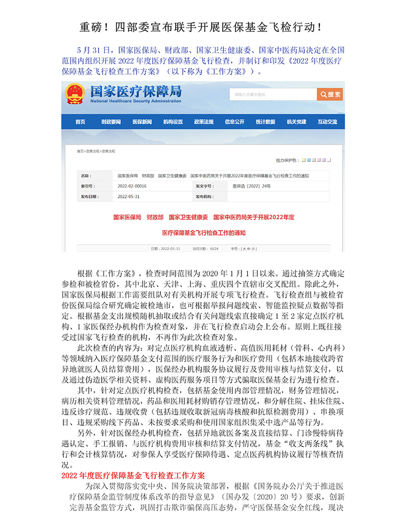 重磅!四部委宣布聯手開展醫保基金飛檢行動!