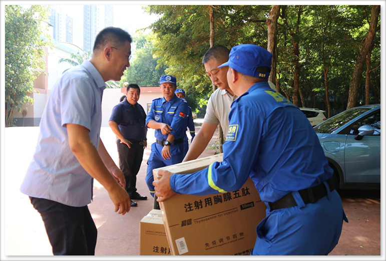 8月9日上午,為了助力公益救援事業,守護藍天救援團隊的健康,海南中和藥業股份有限公司向海口市藍天救援隊捐贈一批免疫調節藥物和信-注射用胸腺五肽,并在公司舉行了捐贈儀式。