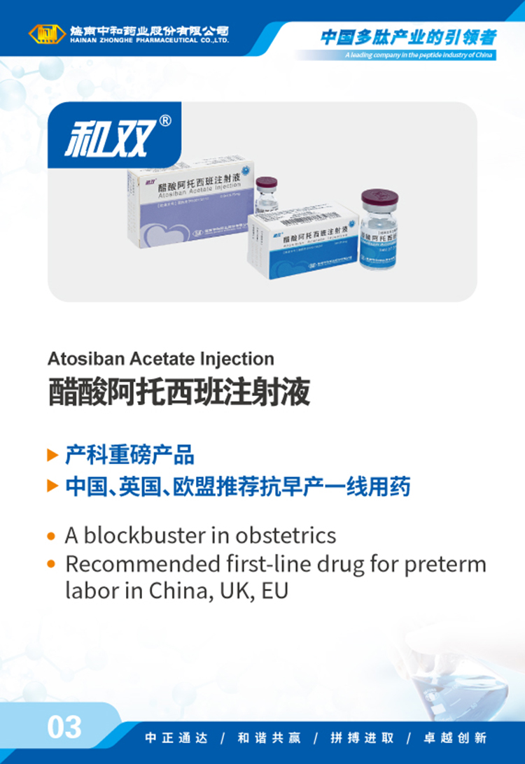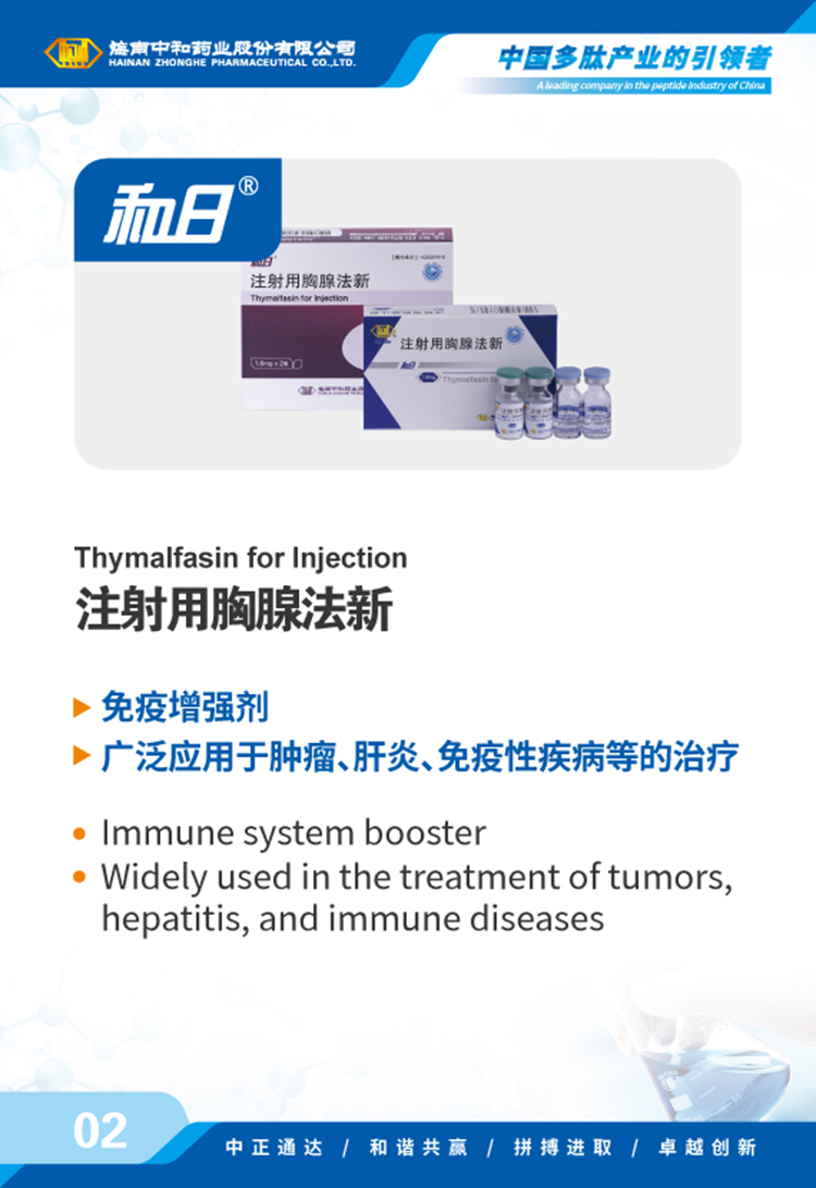 海南中和藥業股份有限公司(以下簡稱中和藥業)成立于1995年4月17日,為我國最早專門從事化學合成多肽藥物的研究和實現產業化的國家高新技術企業,中國國內第一個化學合成多肽類新藥“注射用胸腺五肽”就由中和藥業自行研發上市,填補了中國多肽產業的空白。歷經近30年的發展,公司產品已涵蓋免疫、腫瘤、肝病、心血管、內分泌、婦科圍產等多個治療領域,并擁有多肽原料藥、化學原料藥及小容量注射劑(包括預灌封、卡式瓶)、凍干粉針劑、片劑、膠囊劑等多種劑型的生產能力,產品已成功出口韓國、烏茲別克斯坦等多個國家和地區。