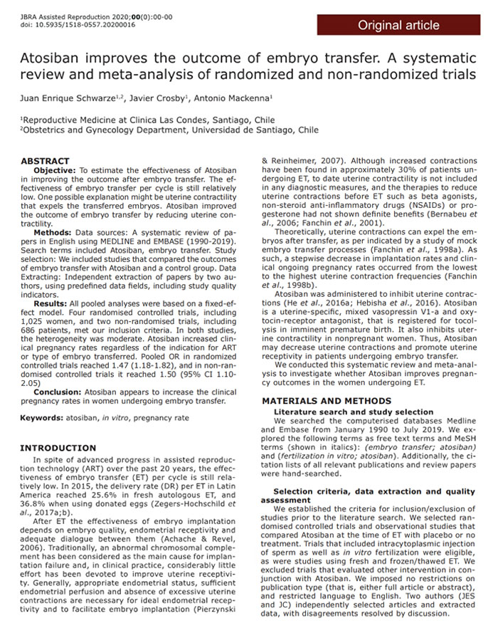 阿托西班改善胚胎移植結局的隨機和非隨機試驗的