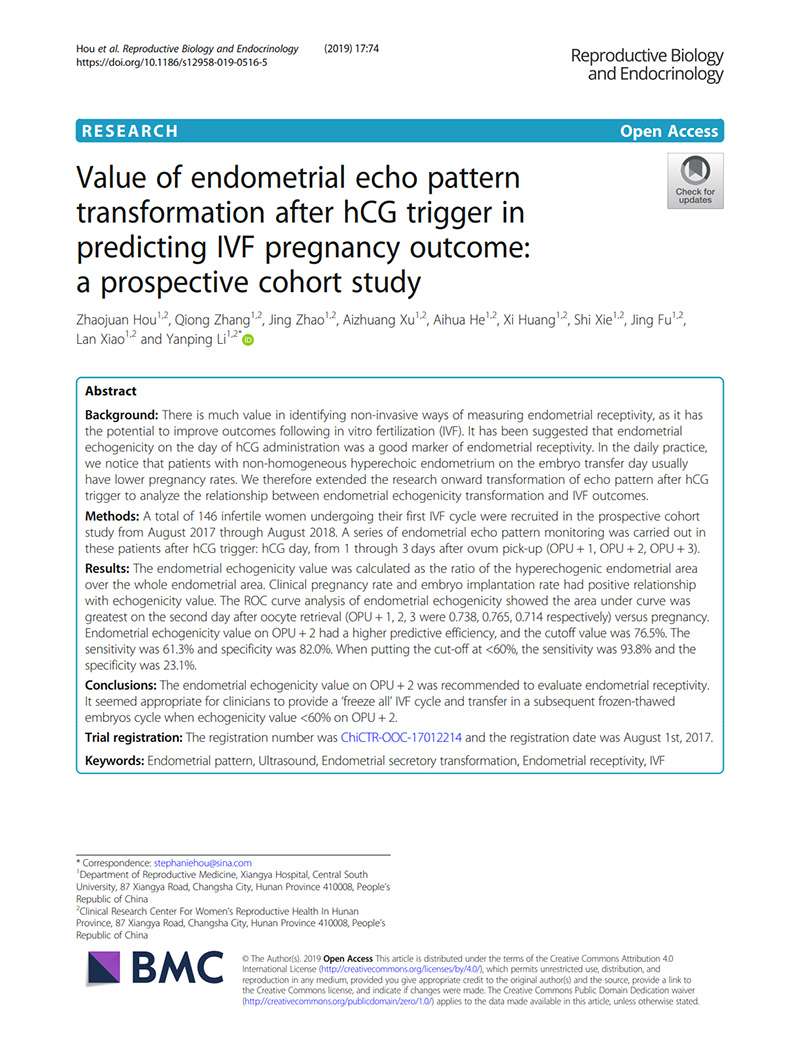 hCG觸發的子宮內膜回聲改變對預測IVF妊娠