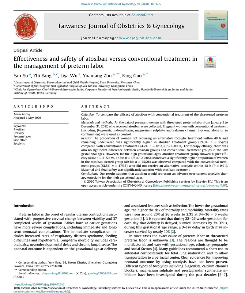 阿托西班治療雙胎妊娠晚期流產及早產的臨床療效